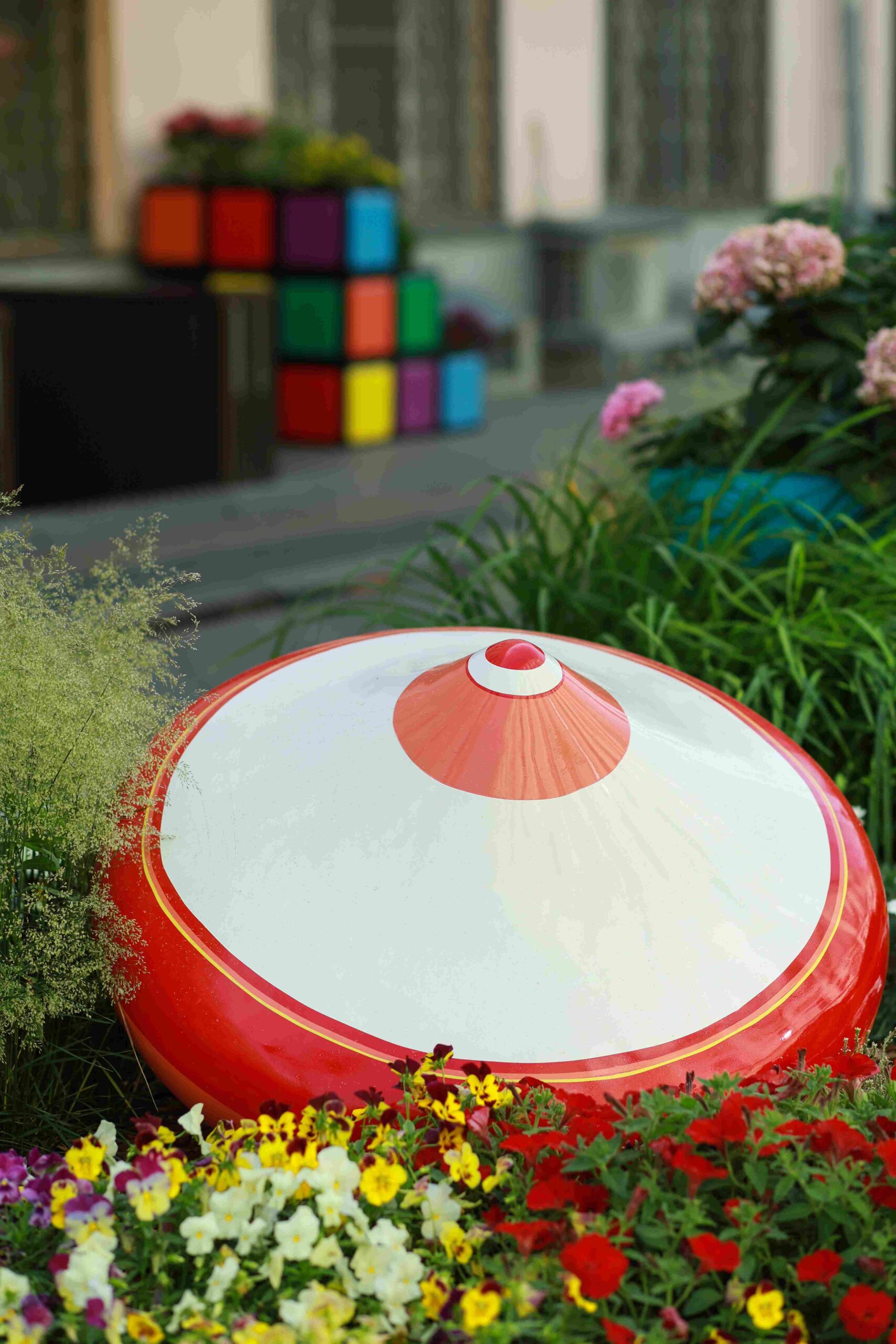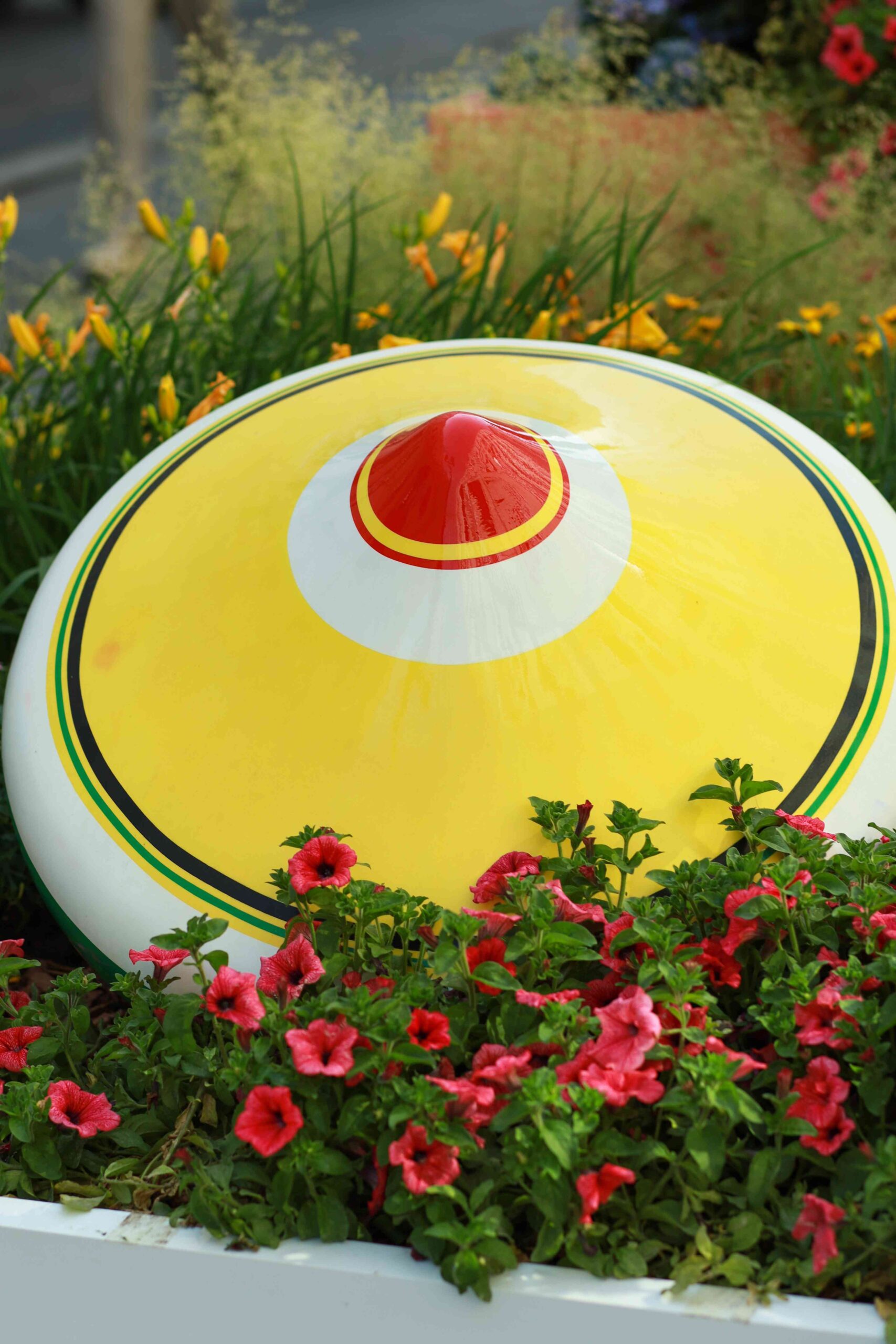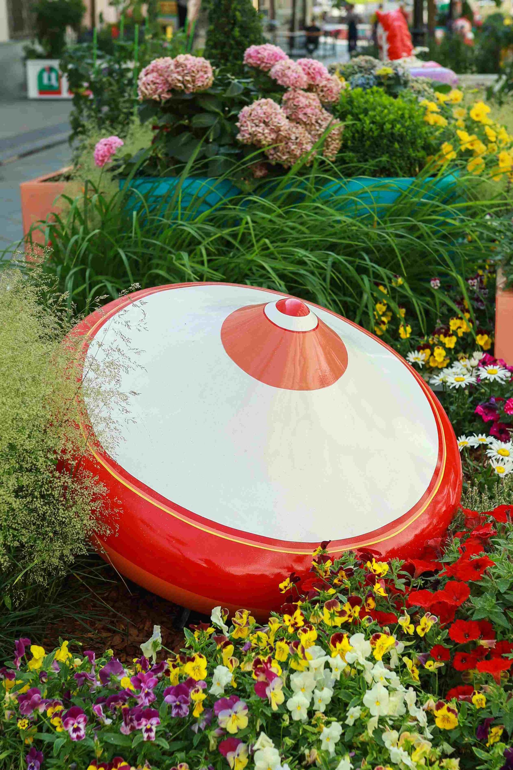Юла – отличный элемент декора, который наполнит локацию ностальгией и волшебством. Юла выполнена в праздничных красно-белых цветах с яркими желтыми акцентами.