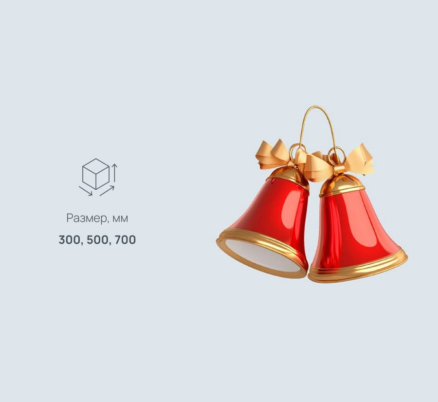 Декоративная фигура «Колокол» – замечательный декоративный элемент, позволяющий осуществить самые фантастические дизайнерские решения, связанные с подготовкой к новогодним и рождественским праздникам, в закрытом объеме помещений и в пространстве улиц. Объемная фигура может быть использована в качестве отдельной декоративной единицы или в составе других композиций.