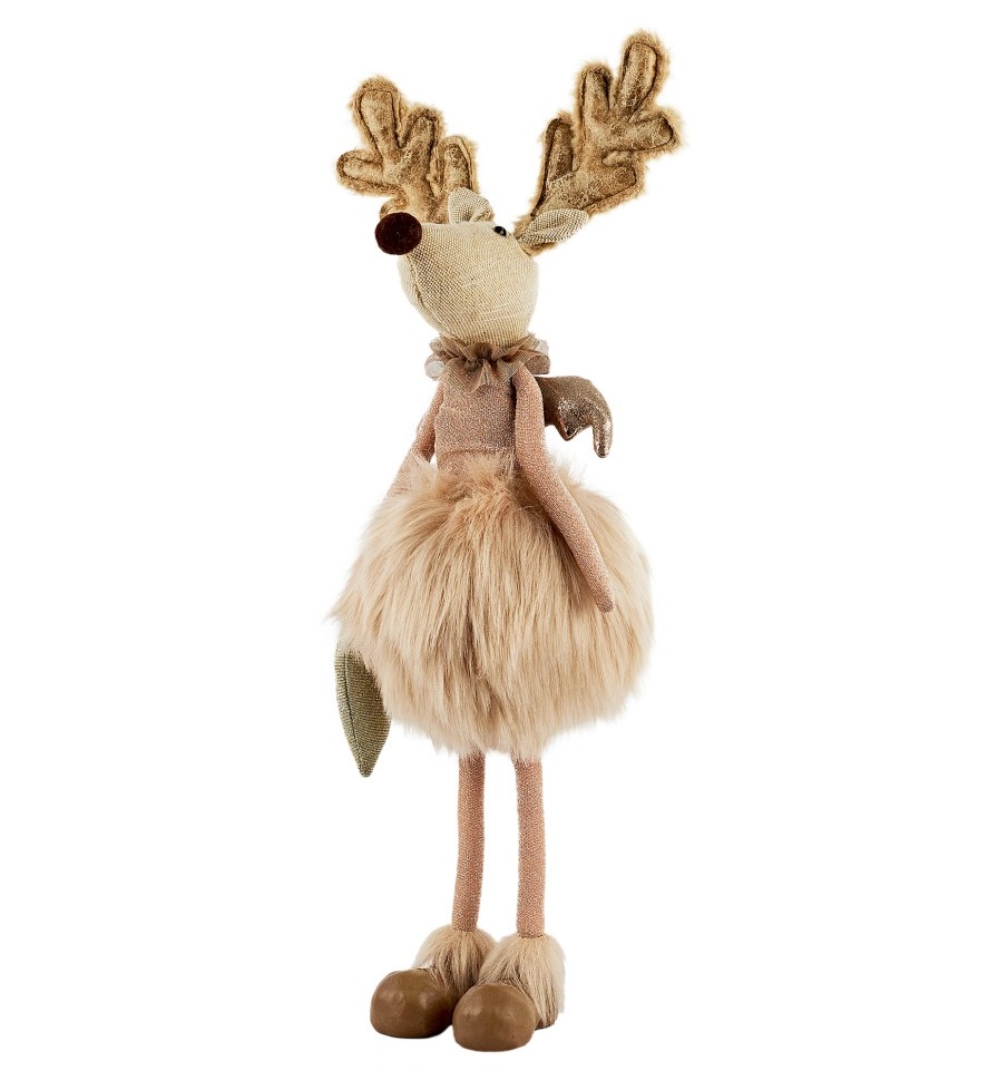 Вдохните дух зимнего чуда с фигурой декоративной оленихи, нарядившейся к празднику. Ее изящные ножки, роскошный шерстяной покров и праздничная одежда придают образу особенную прелесть и уют. Фигура выполнена из полистоуна, покрытого искусственным мехом и текстилем, что обеспечивает прочность и долговечность.