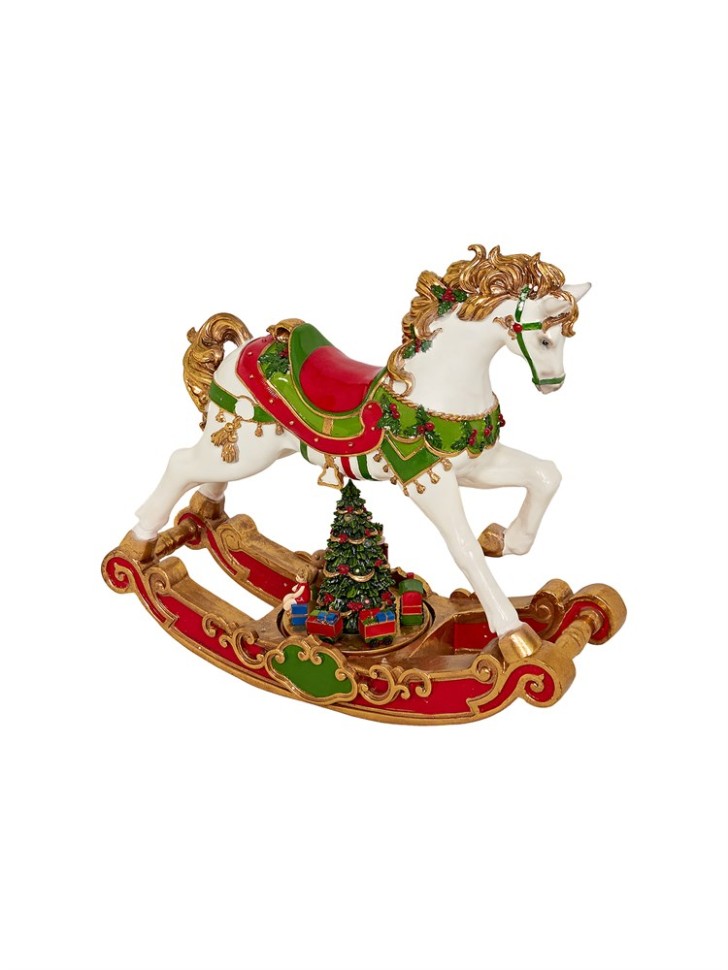 Фигура выполнена из полирезина, что обеспечивает прочность и долговечность, а высота 62 см позволяет установить её на видное место, превращая в центральный элемент вашего новогоднего декора. Используйте лошадь-качалку как центральный элемент вашего интерьера, и она привезет в ваш дом атмосферу праздника и волшебства.