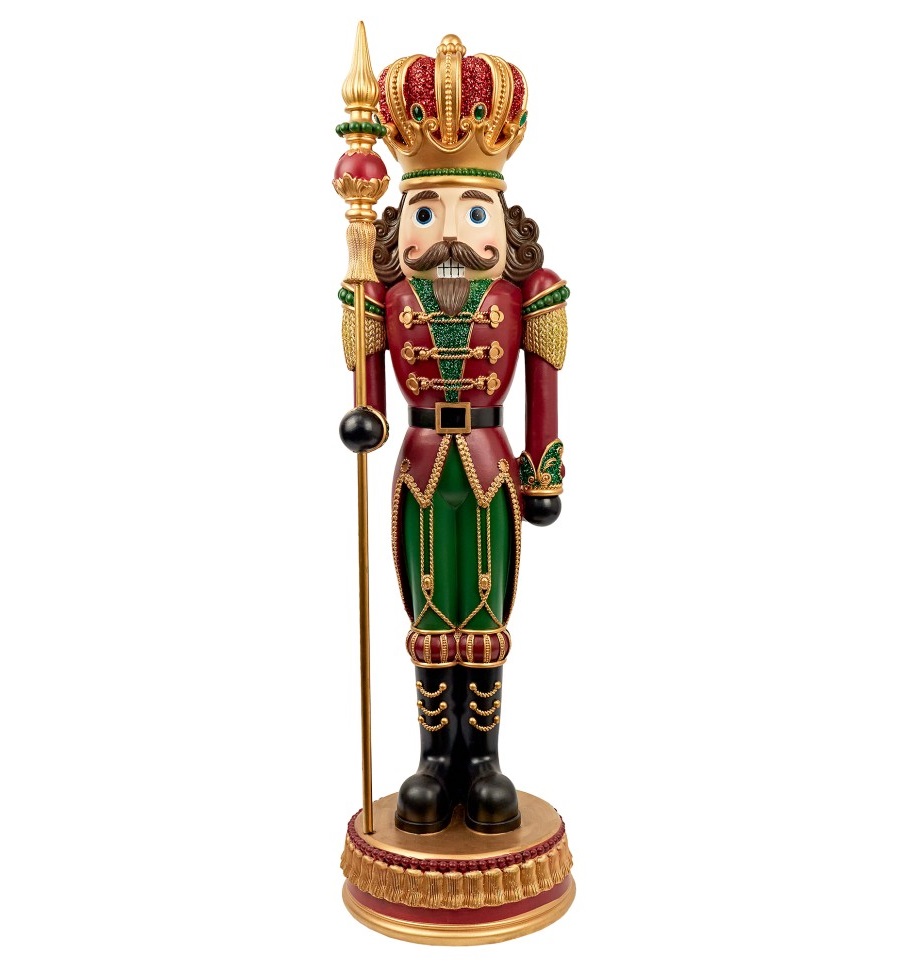 Материал полирезин гарантирует сохранность и надежность, а высота фигуры в 92 см придает ей внушительность и заметность. Эта фигура станет идеальным дополнением к интерьеру, празднику или торговой площадке, привлекая внимание и подчеркивая праздничную атмосферу. Позвольте Щелкунчику возглавить ваш новогодний декор, приглашая в мир волшебства и музыки.