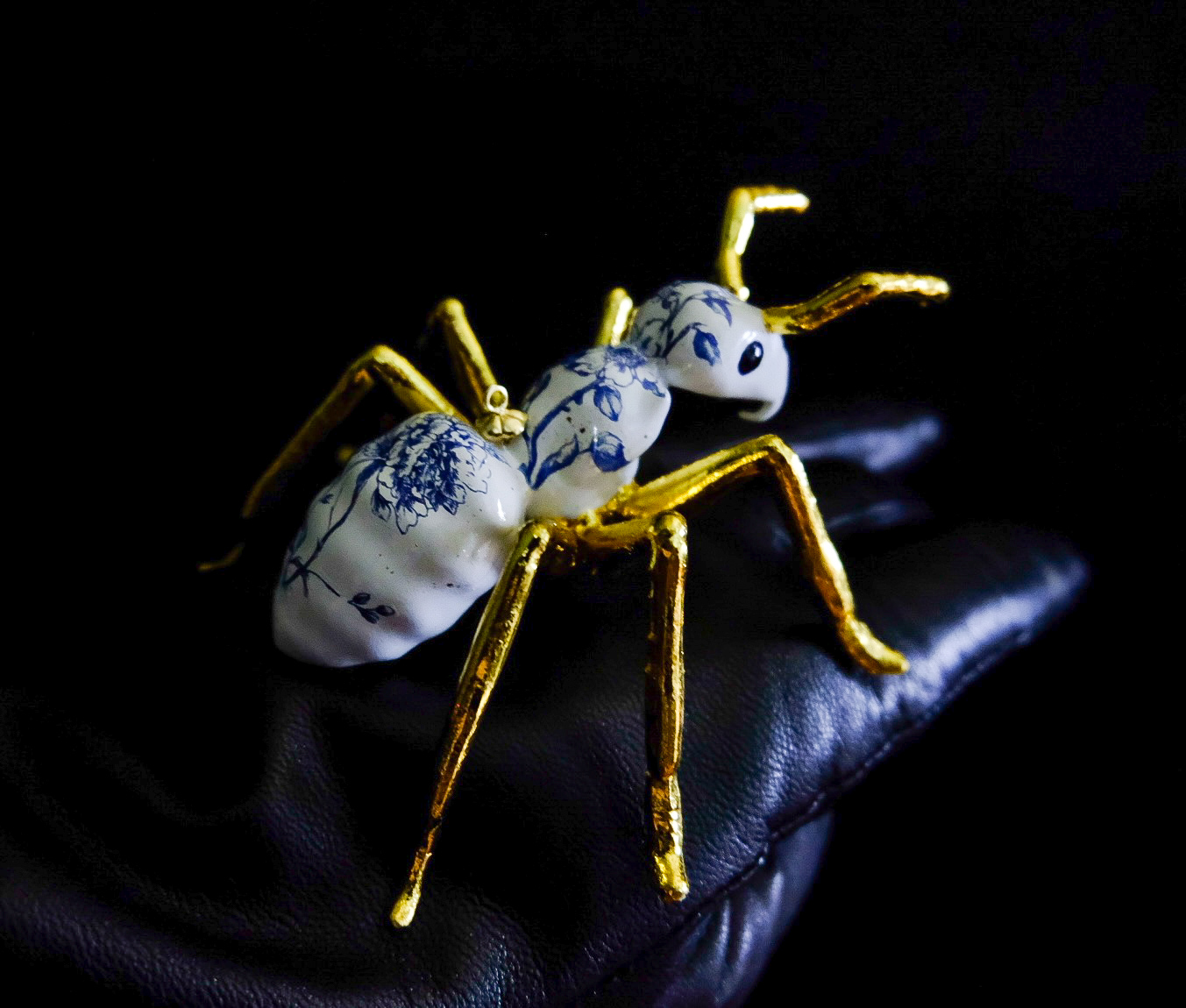 Уникальный муравей станет настоящим украшением вашего новогоднего интерьера. Изготовленный вручную, он сочетает в себе изысканность и оригинальность. Туловище муравья выполнено из фарфора и расписано вручную в нежных голубых тонах, что придает ему особую утонченность. Узоры и цветы, нанесенные на поверхность, создают впечатление легкости и воздушности. Лапки муравья покрыты краской золотого цвета, что добавляет изделию роскоши и блеска.