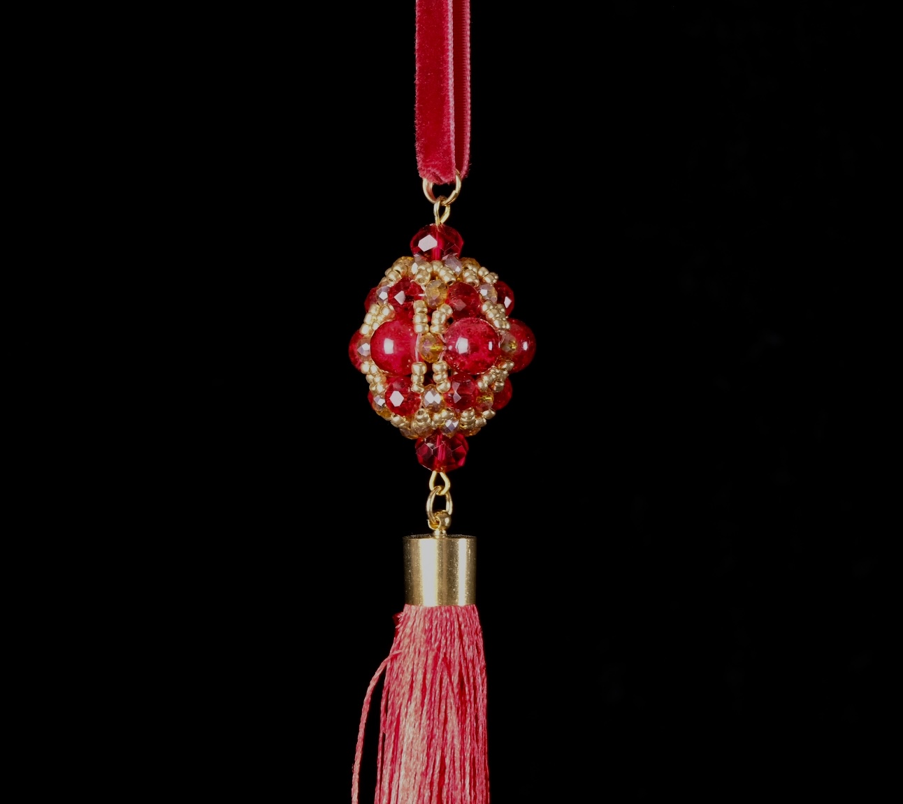 Студия новогоднего дизайна ELIT-DECO представляет уникальную подвеску ручной работы, созданную с любовью и вниманием к деталям. Яркий красный цвет и изящная кисточка придают изделию праздничный и изысканный вид. Этот аксессуар станет идеальным дополнением к вашему новогоднему декору и подарит радость близким.