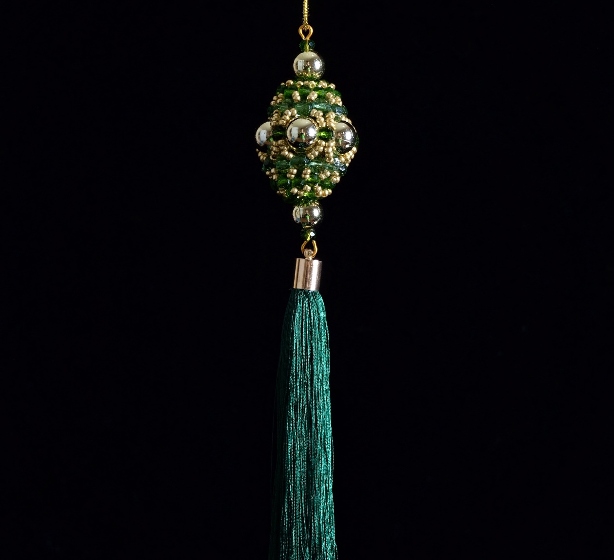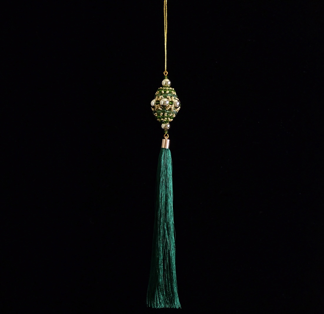 Елочное украшение-подвеска с кисточкой изумрудная