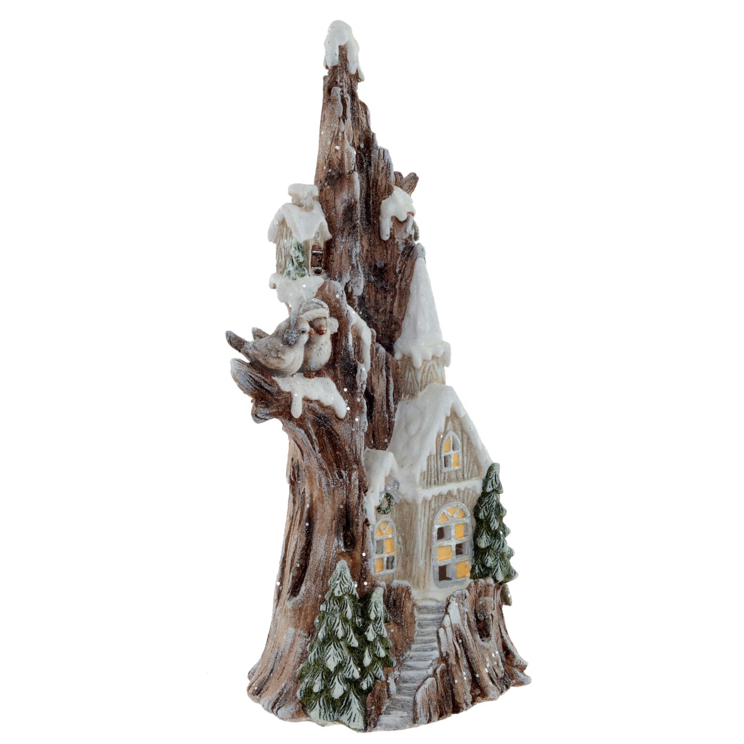 Фигура декоративная с подсветкой “Домик на скале с птичками”
