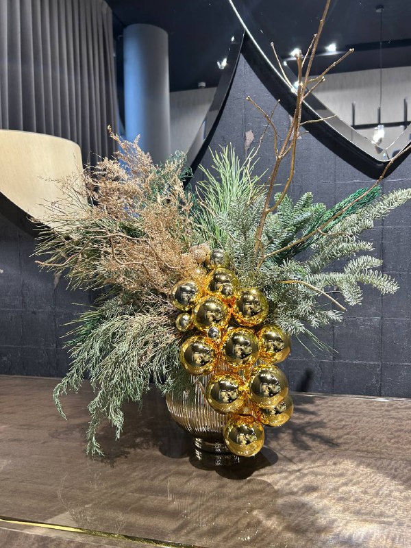 Настольная Композиция Золотой лес – источник восхищения и изящества. Ее ветки, словно нежные щетки, создают прекрасное обрамление для каждой еловой ветви. Золотистые оттенки ветвей придают композиции блеск и притягательность. На верхушке этих ветвей гордо расположена гроздь золотых шаров, которые словно солнечные лучи, мерцающие в свете. Их яркое золотое сияние наполняет пространство теплотой и роскошью. Композиция Золотой лес – это элегантное и изысканное украшение, которое привлекает внимание и создает атмосферу праздника и волшебства. Она станет великолепным акцентом в вашем интерьере, придавая ему особый шарм и роскошь.